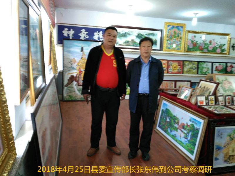 2018年4月25日,興隆縣委常委、宣傳部長、統戰部長張東偉來到公司,就鄭氏砂藝創新發展、新產品研發工作進行調研考察。張部長在參觀了車間、展廳之后強調:鄭氏砂藝要緊盯市場,抓好創新發展工作,尤其要加快抓好旅游紀念品的研發工作,創新產品種類,用以豐富興隆的旅游市場,也用來提高企業的經濟效益。宣傳部副部長、文明辦主任馬宏罡、鄭氏砂藝文化有限公司總經理鄭鐵軍陪同調研考察。