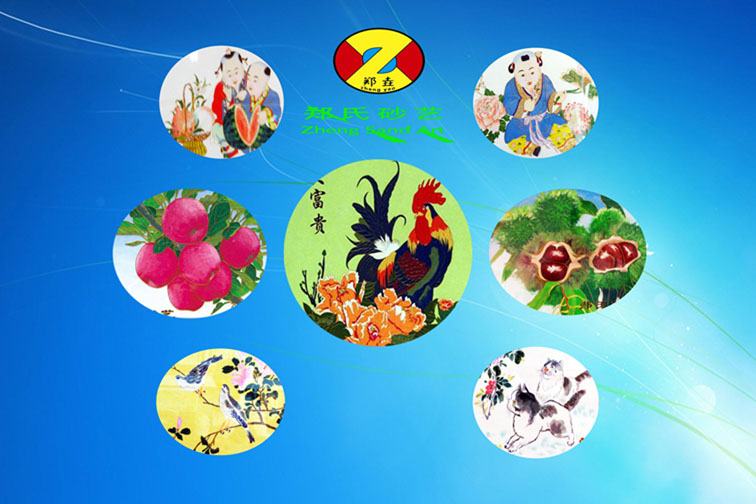 鄭氏砂藝畫,始創于晚清秀才鄭克祥,距今已有180多年的歷史。聽老一輩人口口相傳和史料記載,作為天祖的晚清秀才鄭克祥,酷愛讀書,習字繪畫,也愛游山玩水,游學中發現了一種新奇的作畫方式,他們的材質不是筆墨紙硯,而是從自然界中提煉出的精細砂礫,先用樹木的纖細枝條勾勒出畫面的主要輪廓,再用天然彩砂作為畫面的色彩,用榆樹皮熬膠粘接,做出的畫面色彩靚麗,線條舒暢而且能久藏卻不褪色,于是便認真地學習起來,學習研究中發現這種砂畫有畫面不牢固容易破損的缺點,隨即對砂畫的不足之處進行了大膽的改革創新,使砂畫作品大大提升了檔次,許多作品被商賈人士收藏,就是當地縣官、州官也常常購買進貢朝廷,博得皇帝喜愛、收藏。從此我們祖上的鄭氏砂畫立腕成名且名揚當時。