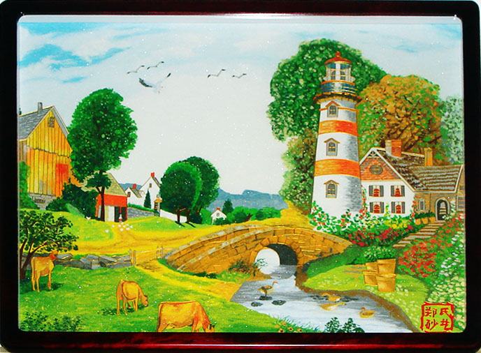 砂畫,顧名思義,就是用砂子做畫。砂畫結合現代人的審美觀,依托深厚的文化底蘊和文化內涵。人們在電視上經常看到藝術大師在一個底部可照亮的白色或透明的膠硬板,然后把細小的沙子撒在上面,用手指在上面畫畫,揮灑自如,惟妙惟肖,但是這種沙畫好看卻不能保存和攜帶,我們在霧靈山腳下尋覓到的鄭氏砂畫是一種能夠攜帶的藝術作品。