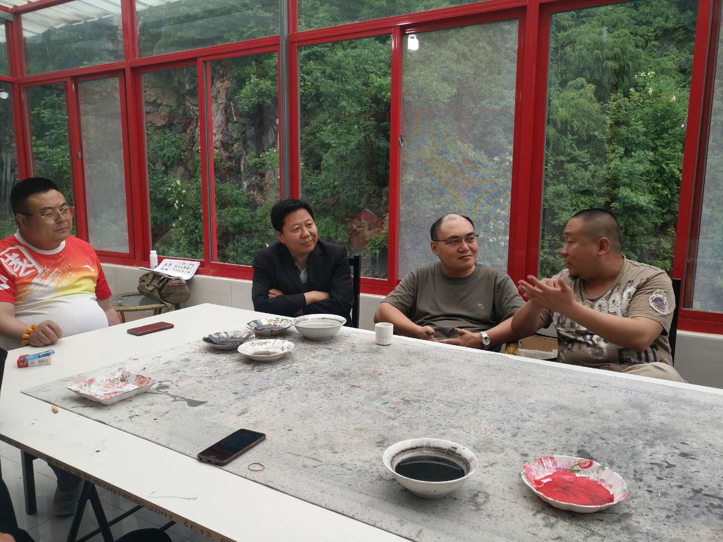 2018年6月17日,天津圣澤大通書畫院著名指畫名家王忠林、花鳥畫家尹寶華、書法家寧厚圃、書法家周征、山水畫家李學龍、書法家黃可鑫、花鳥畫家李旭等諸位老師應邀來興隆參加鄭氏砂藝工會委員會主辦的文化藝術交流活動。興隆縣鄭氏砂藝美術協會主席鄭鐵軍,興隆縣美術協會戴鐵松和韓鳳山全程參加了交流活動。