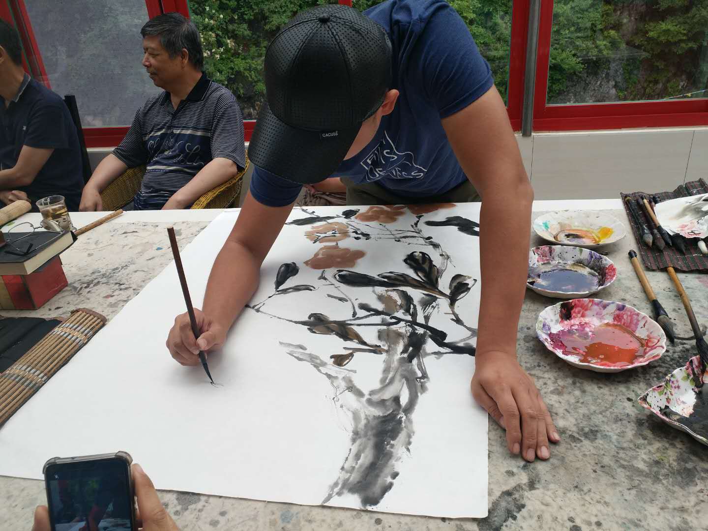 天津圣澤大通書畫院老師現場作畫