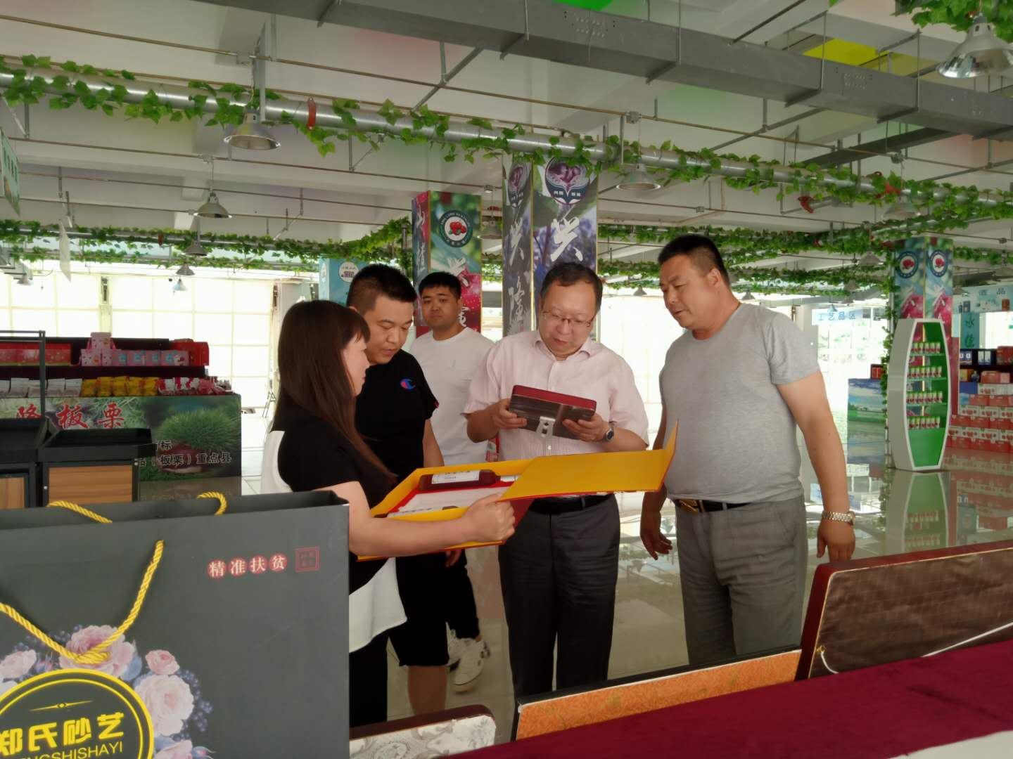 2020年6月22日,興隆縣縣委書記薛青松親臨興隆縣農(nóng)產(chǎn)品展示展銷中心視察指導工作,期間在董事長鄭鐵軍的陪同下參觀了鄭氏砂藝展出的扶貧系列產(chǎn)品,薛青松書記對2019年鄭氏砂藝的扶貧工作進行了深入了解,聽取了董事長鄭鐵軍的扶貧情況匯報,并對鄭氏砂藝非遺文化扶貧工作和扶貧產(chǎn)品給予了高度評價。薛青松書記指出,目前脫貧攻堅是主要任務,要發(fā)揮文化企業(yè)特點,不斷學習,尋求創(chuàng)新,把“非遺+扶貧+旅游”的新觀念、新思路、新方法投入實踐,促進文旅融合,提高縣文化產(chǎn)業(yè)的可持續(xù)發(fā)展。這樣既可以帶動貧困戶脫貧致富,又能推動非物質文化遺產(chǎn)的傳承與發(fā)展。