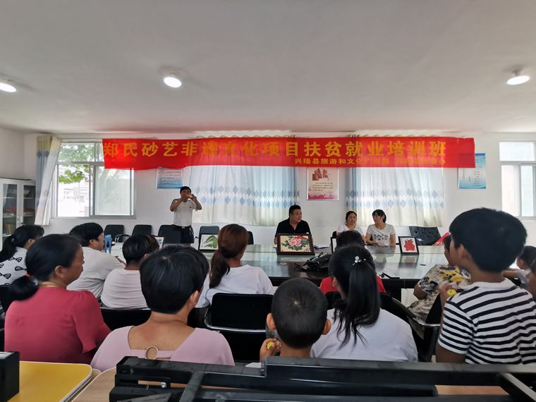 (通訊員:楊福東、張國新)為認真貫徹落實精準扶貧工作,打贏脫貧攻堅主體戰。由縣旅游和文化廣電局、縣扶貧辦主辦,興隆縣鄭氏砂藝文化有限公司承辦的非遺文化項目鄭氏砂畫扶貧培訓班于2020年7月22日在興隆縣大杖子鎮車河口村正式拉開帷幕。
