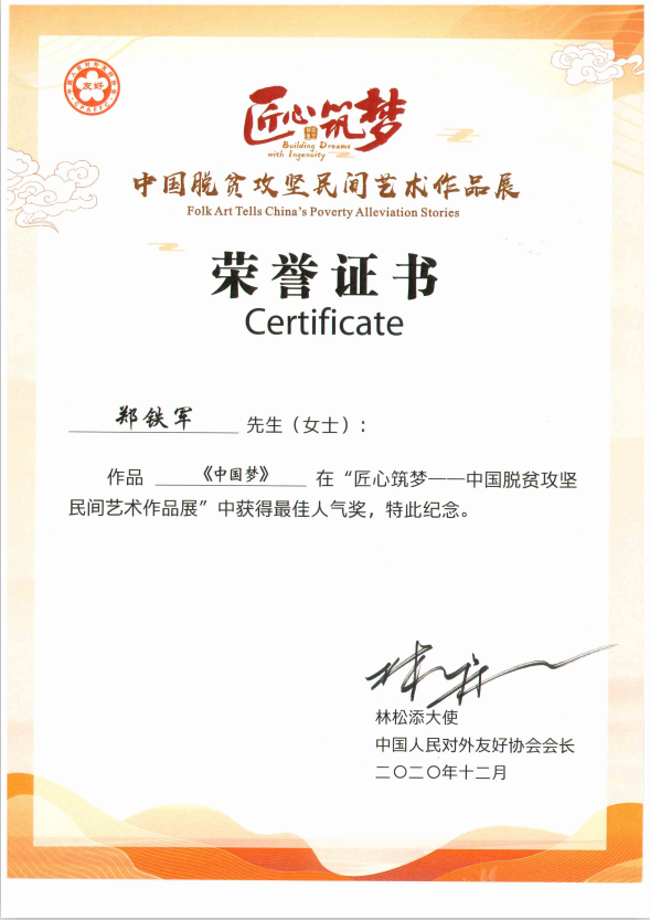 入圍國家級“匠心筑夢--中國脫貧攻堅民間藝術作品展”