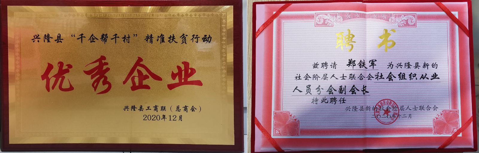 鄭氏砂藝榮獲興隆縣“千企幫千村”精準扶貧行動《優秀企業》榮譽稱號