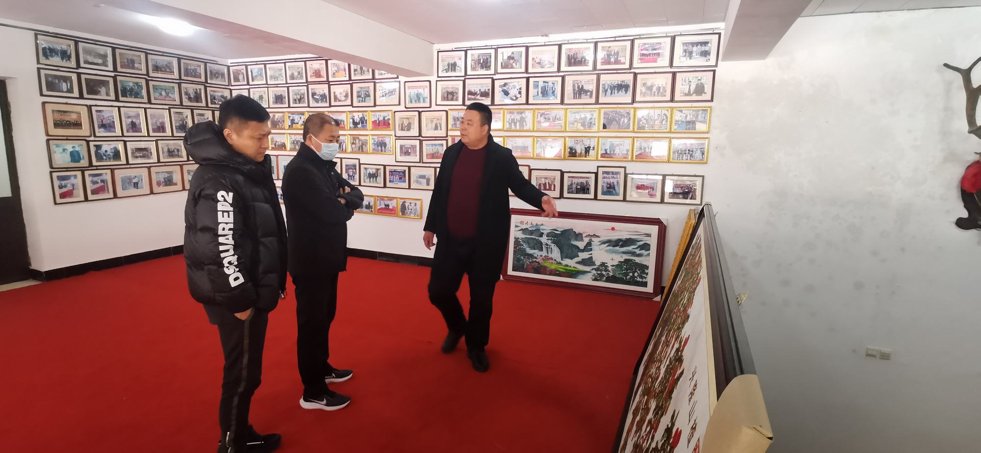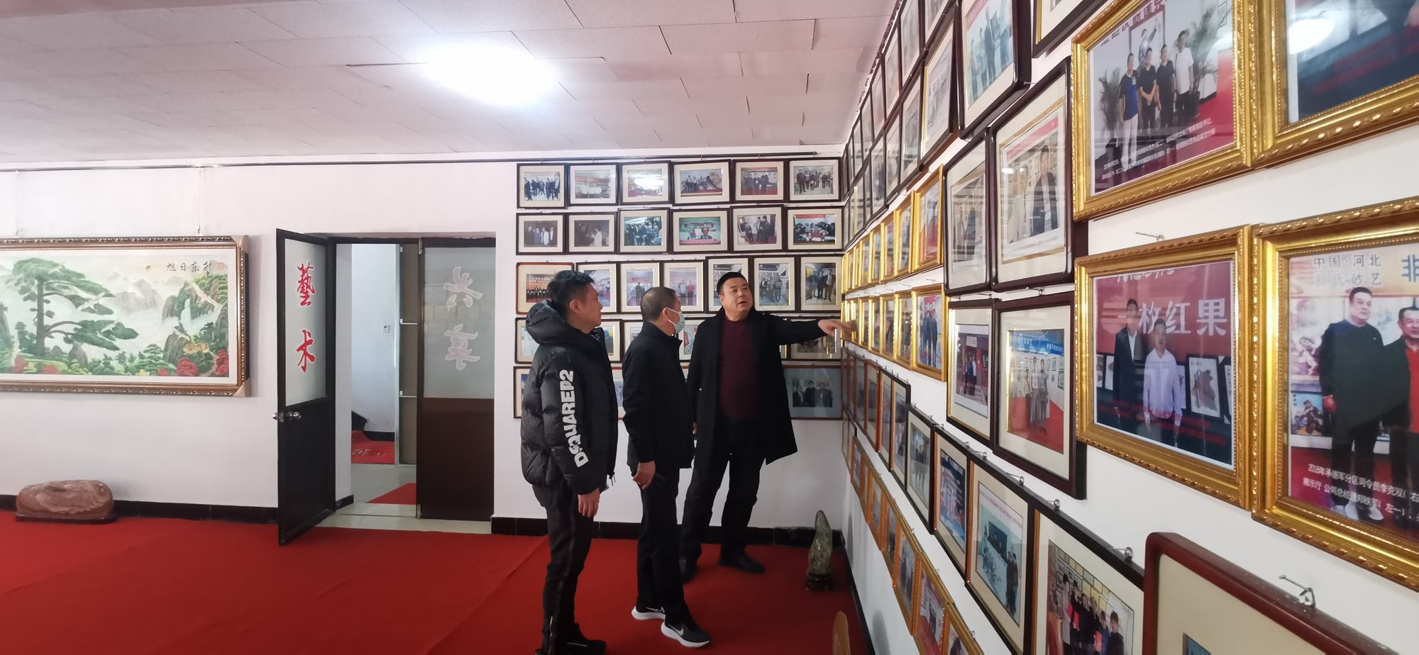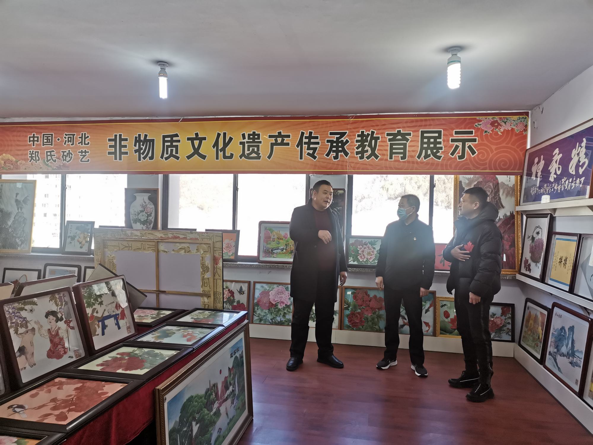 李曉軍主任和趙楠主任在鄭氏砂藝董事長鄭鐵軍的陪同下,來到了鄭氏砂藝非遺文化展廳,參觀了領導關懷展示墻、榮譽墻、鄭氏砂藝金銀絲彩砂畫和旅游伴手禮等,參觀期間,領導詢問了企業近年來運營銷售等情況,聆聽了鄭總講述企業近年來取得的成績和目前遇到的困難,李曉軍主任對企業多年來取得的成績給予肯定,對企業目前面臨的困難表示理解,并指出2023年隨著疫情政策放開和《中國式現代化興隆場景文化強縣工作方案》的出臺等,都是我縣文化產業發展的利好。鄭氏砂藝是極具興隆地區特色的文化產業,要抓住機遇、勇于創新,把企業做大做強,加強企業非遺文化宣傳力度,將鄭氏砂藝(畫)做成具有興隆縣標志性的文化產品,為推動文化興隆建設做出貢獻。