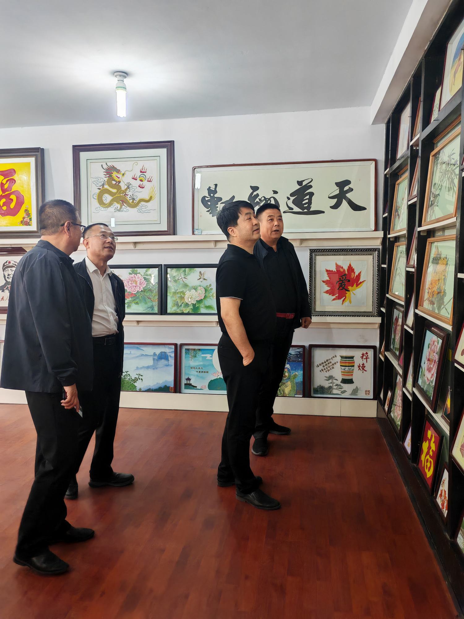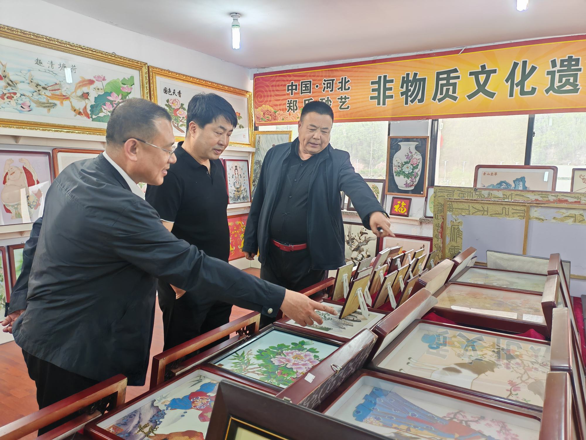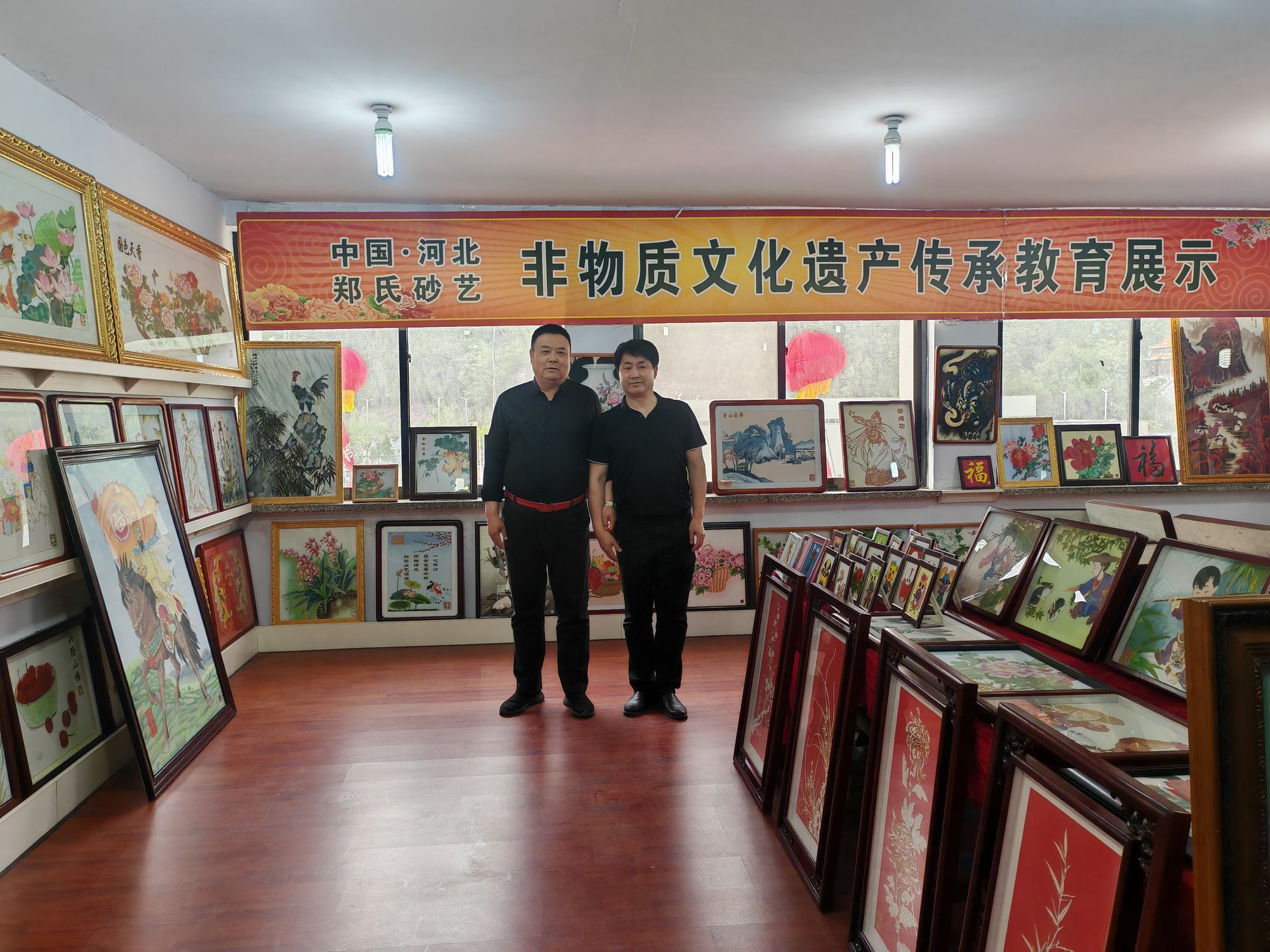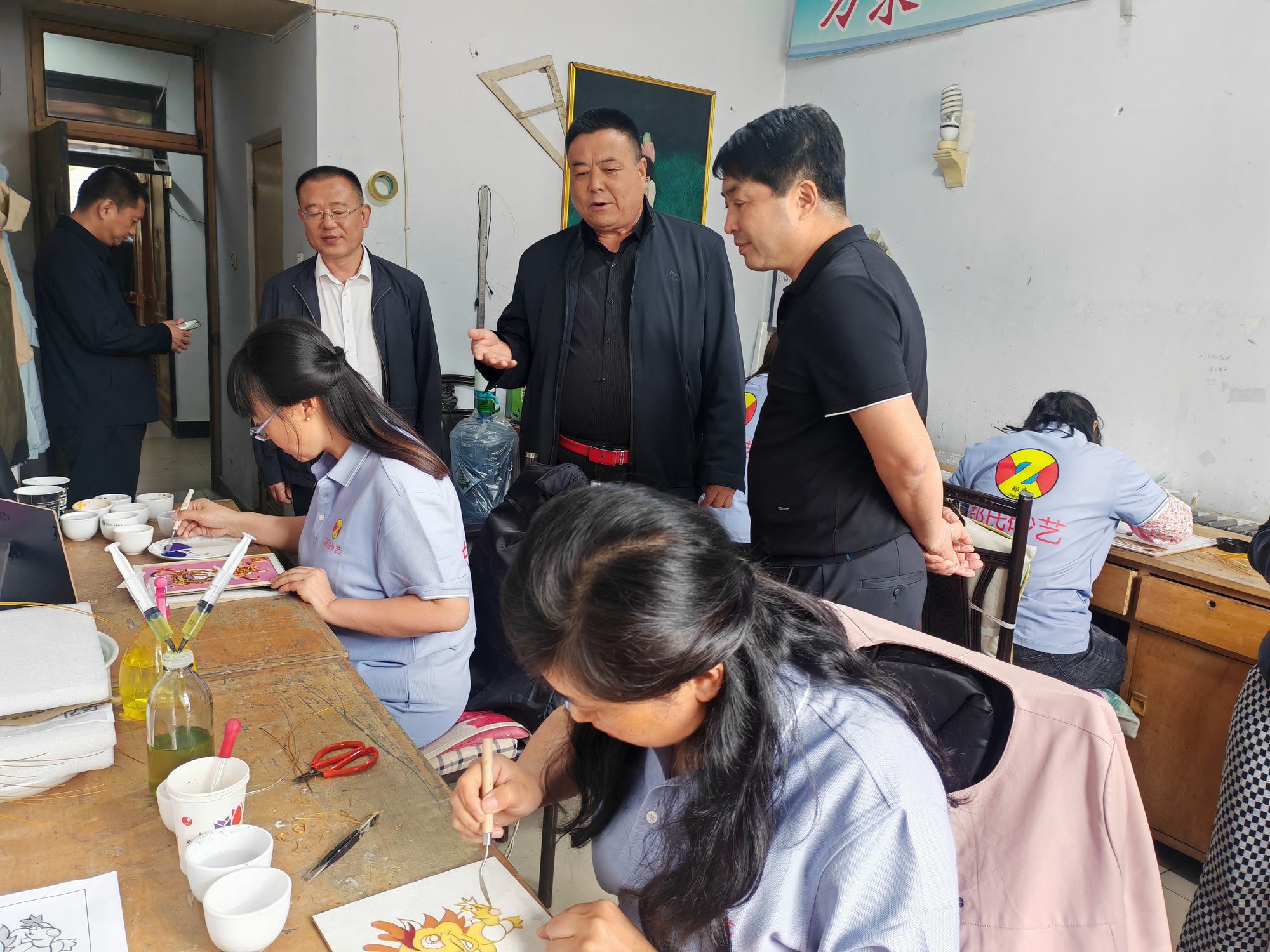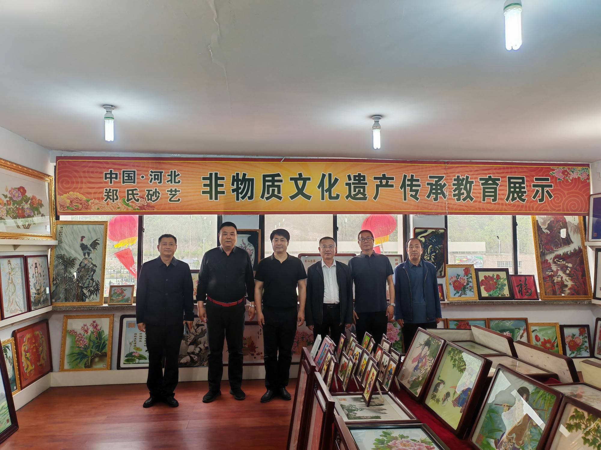 程志忠書記等一行在鄭氏砂藝董事長鄭鐵軍的陪同下,參觀了鄭氏砂藝非遺文化展館,了解了鄭氏砂藝非遺文化的傳承和發展。隨后,實地觀察了鄭氏砂藝(畫)的制作過程,并與砂藝技師們進行了交流,了解了砂畫制作原料和技藝手法。