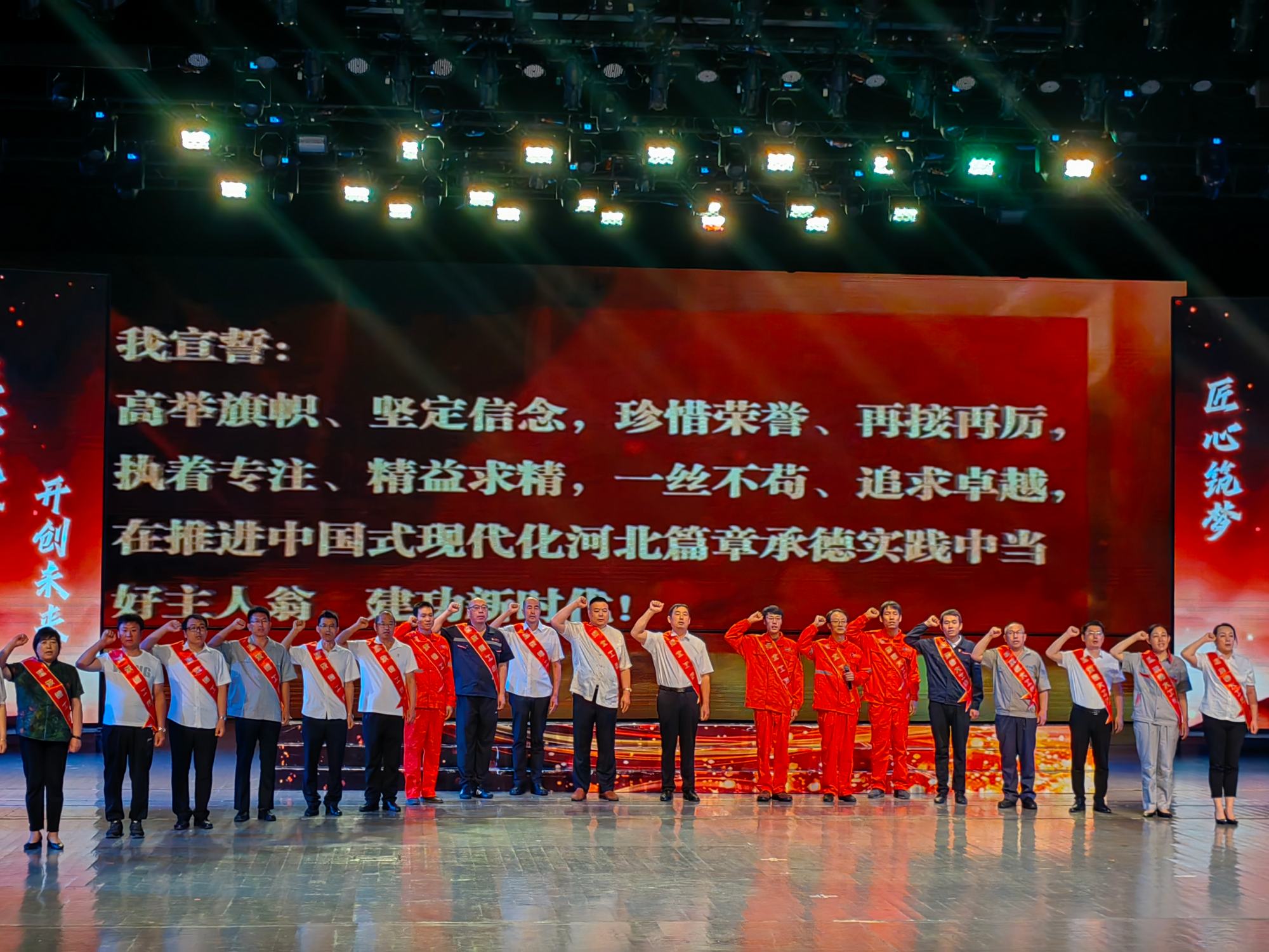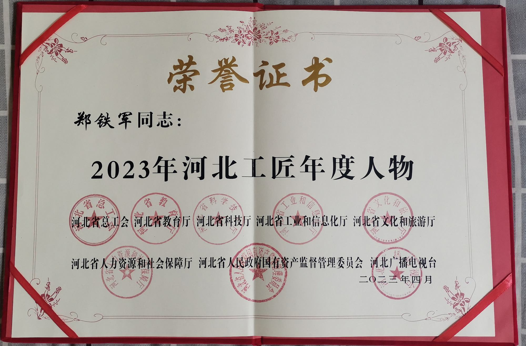 7月6日上午,2023年河北工匠、承德大工匠、承德工匠年度人物發(fā)布儀式在承德大劇院舉行,承德市委副書記蔣文冬,承德市委常委、宣傳部部長趙青英,承德市人大常委會副主任郭士剛,承德市人民政府副市長甄毓敏等相關領導出席了此次活動,并與工匠年度人物榮譽獲得者進行合影留念。鄭氏砂藝(畫)第五代非遺傳承人鄭鐵軍榮獲“2023年河北工匠年度人物”榮譽稱號。