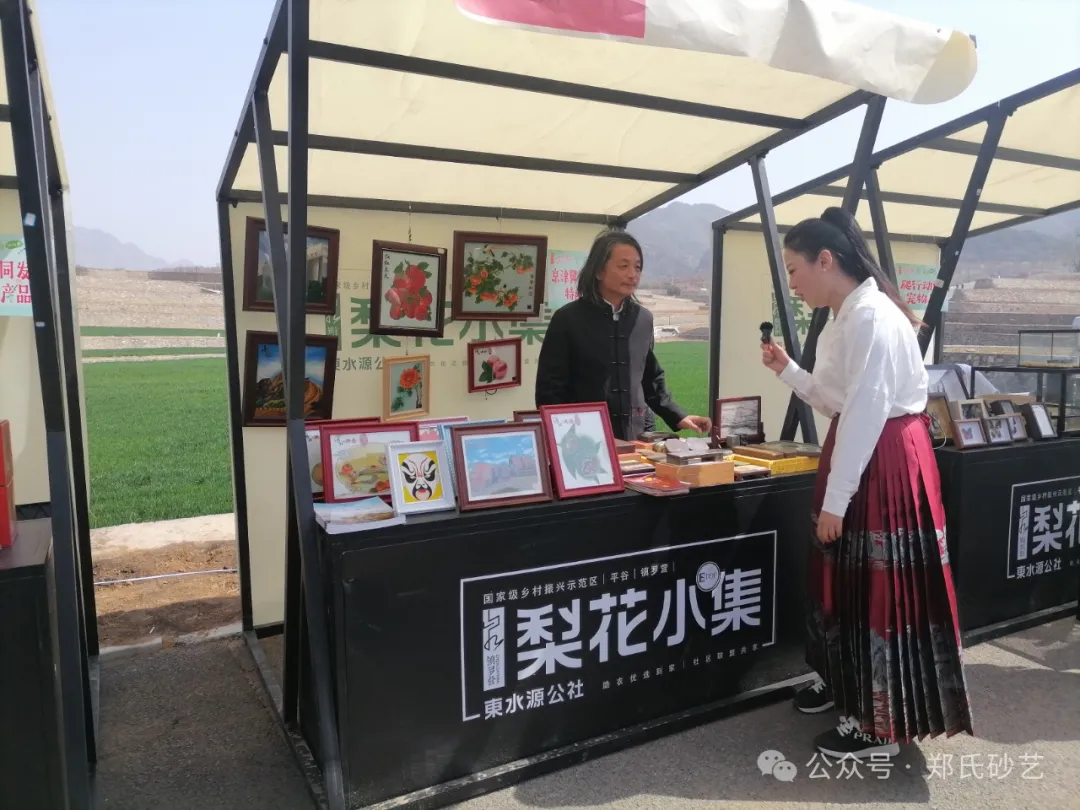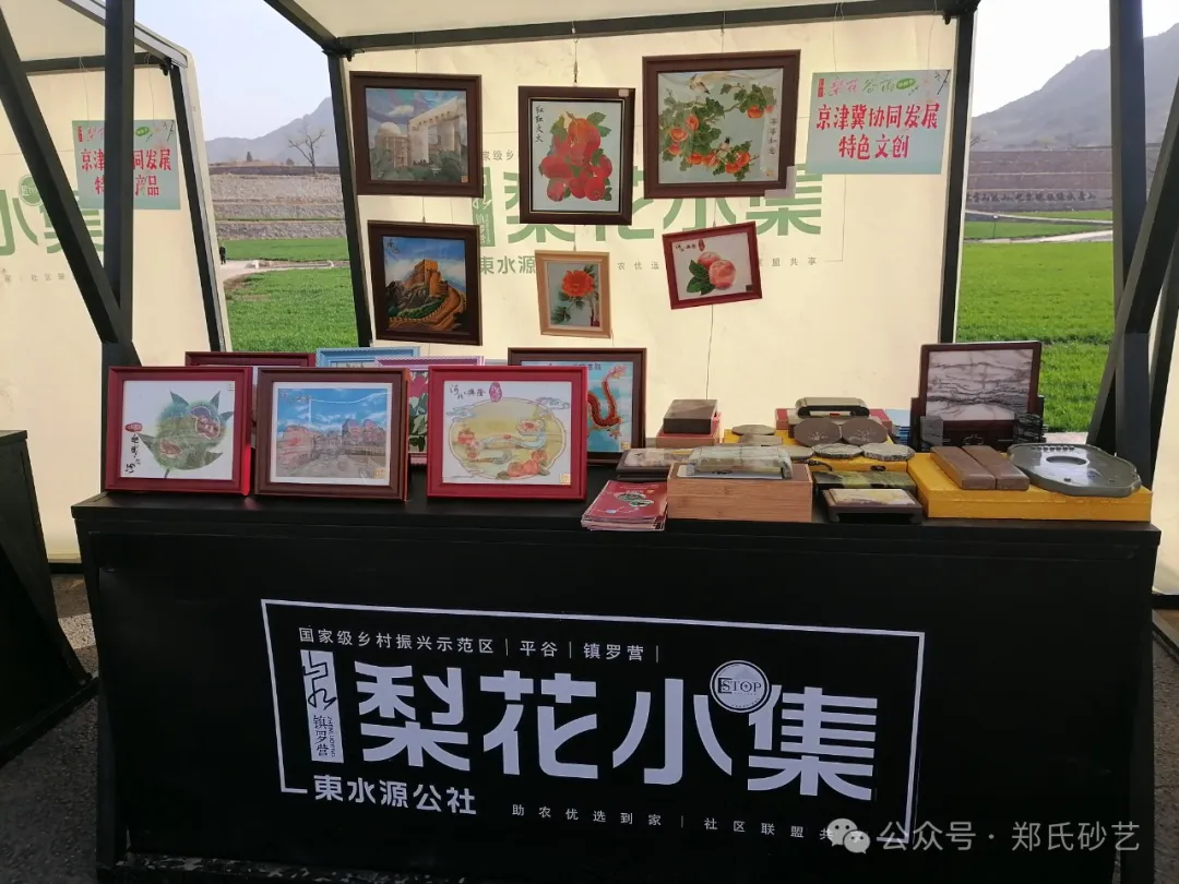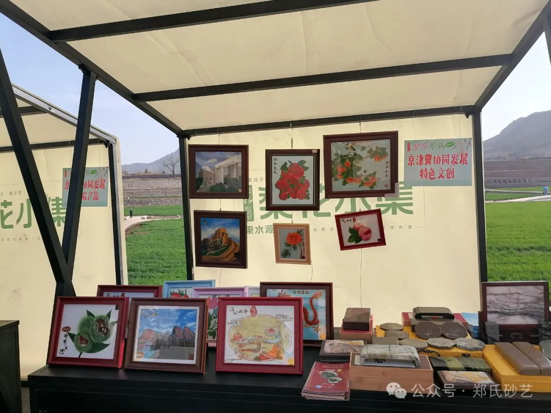 “忽如一夜春風來,千樹萬樹梨花開” 春風正好,花開有期。2024年4月8日上午,北京市平谷區鎮羅營鎮人民政府舉辦的以“千載梨花頌、花漾鎮羅營”為主題的梨花谷雨文化節活動拉開帷幕,為營造“傳統文化+梨花美景”的活動氛圍,鄭氏砂藝受邀參加了此次活動,并精心挑選了20余幅精品砂畫參加展出,展出作品涵蓋了紅火(山楂)、吉利(板栗)、平安(蘋果)、天文臺、興隆山風光等興隆地區眾多的特色產品和獨特景點,展出期間,鄭氏砂藝(畫)作品以其材質的新穎獨特,制作手法的精妙絕倫,畫面內容的豐富多彩,吸引了眾多游客駐足觀賞,成為了自媒體和游客的拍攝打卡地。鄭氏砂藝用自己的藝術方式充分地向北京人們展示了興隆的文化特色,同時為平谷“梨花節”增添了濃厚的文化氣息。