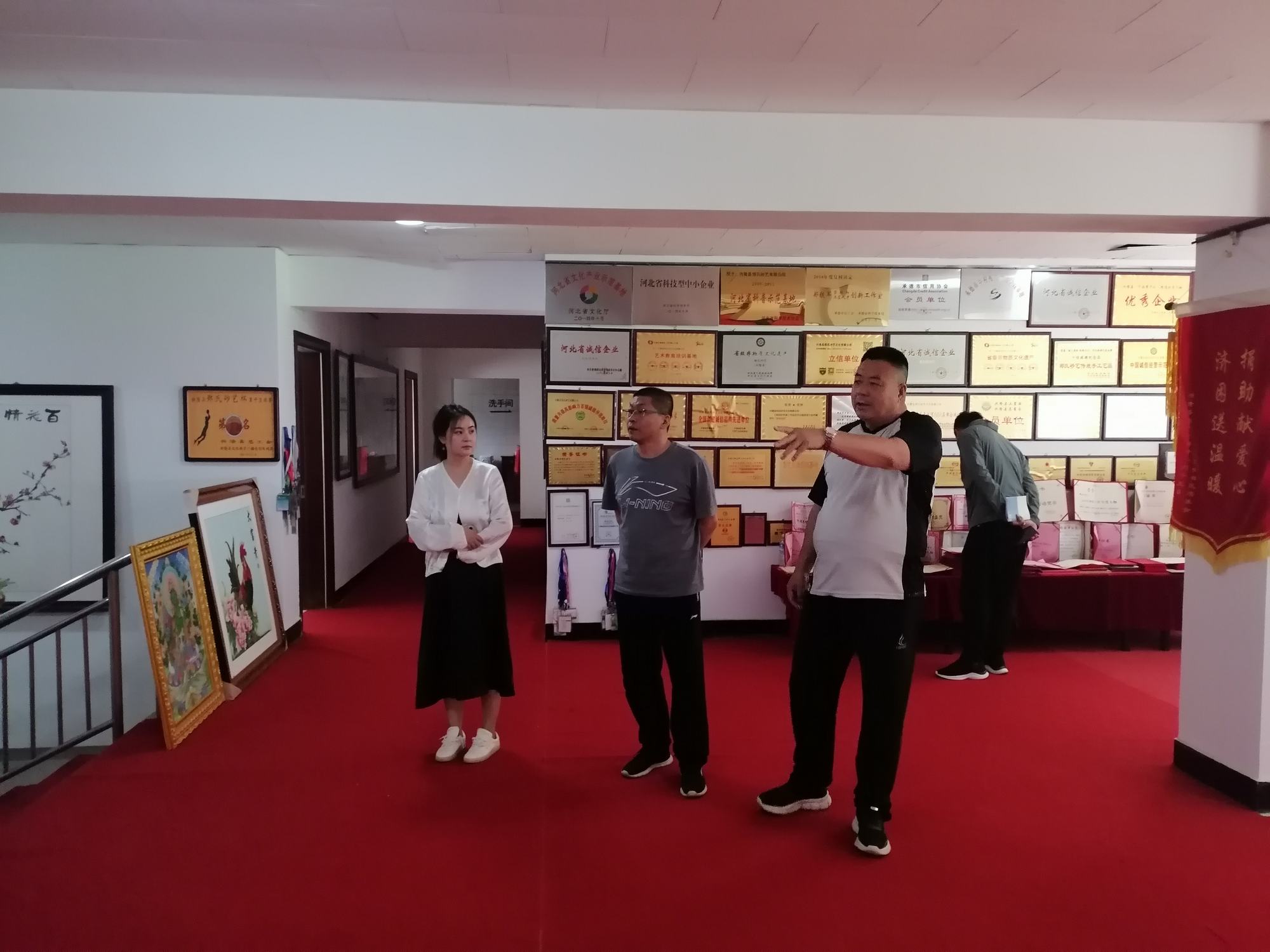 2024年7月2日上午,興隆縣發改委副局長勾善勇一行蒞臨鄭氏砂藝文化有限公司進行考察指導,鄭氏砂藝董事長鄭鐵軍進行了熱情接待,勾善勇副局長就鄭氏砂藝近年來出口貿易和對外商貿合作情況進行了詢問,了解了企業在發展過程中面臨的難點問題,并提出了合理性的建議。隨后,勾善勇副局長一行在鄭總的陪同下對鄭氏砂藝非遺文化館進行了參觀,并對鄭氏砂藝企業的發展成果給予了充分肯定。