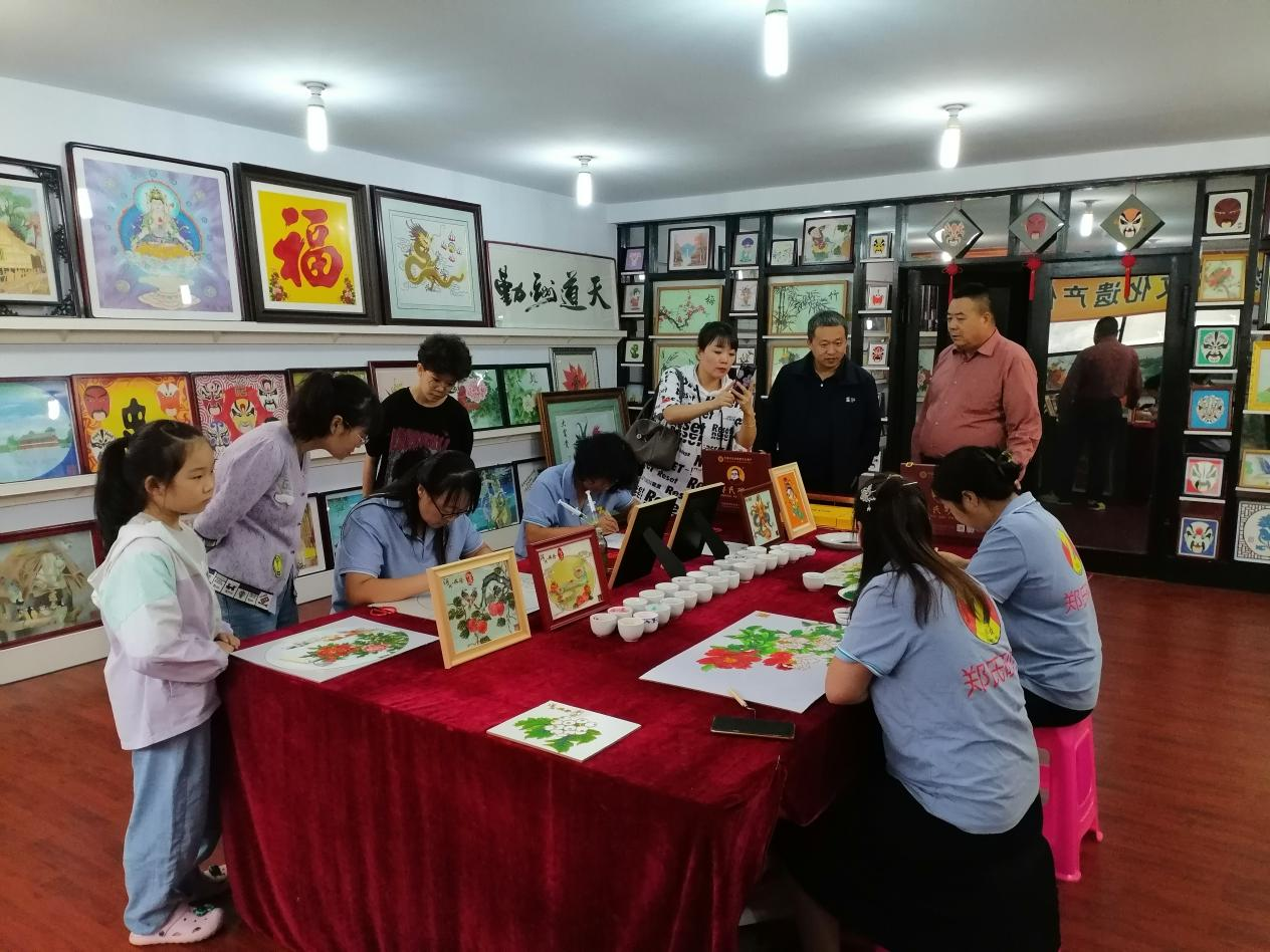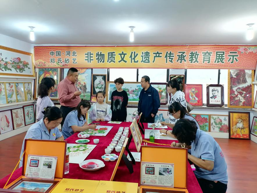 隨后,一行人來到了鄭氏砂藝的創新工作室,近距離觀看了砂藝作品的制作過程。拓圖、粘絲、點藍、裝裱等十四道工序,每一步都充滿了匠人的心血與智慧。師生們紛紛表示,通過目睹砂藝作品的誕生過程,他們對砂藝文化有了更加深刻地理解和認識。