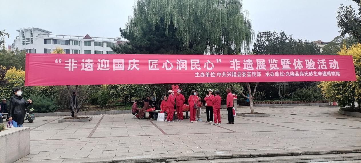 在國(guó)慶與中秋雙節(jié)來(lái)臨之際,為厚植廣大群眾愛(ài)黨愛(ài)國(guó)愛(ài)家情懷,彰顯興隆縣優(yōu)秀傳統(tǒng)文化及非遺技藝的獨(dú)特魅力,2025年9月27日下午,由中共興隆縣委宣傳部主辦、興隆縣鄭氏砂藝文化有限公司和興隆縣老科協(xié)傳統(tǒng)文化分會(huì)承辦的“非遺迎國(guó)慶 匠心潤(rùn)民心”非遺展覽暨體驗(yàn)活動(dòng)在興隆縣人民廣場(chǎng)隆重舉行。興隆縣老科協(xié)領(lǐng)導(dǎo)會(huì)員、興隆金峰練字及華童圖書(shū)館師生一同參加"迎國(guó)慶"主題活動(dòng)。