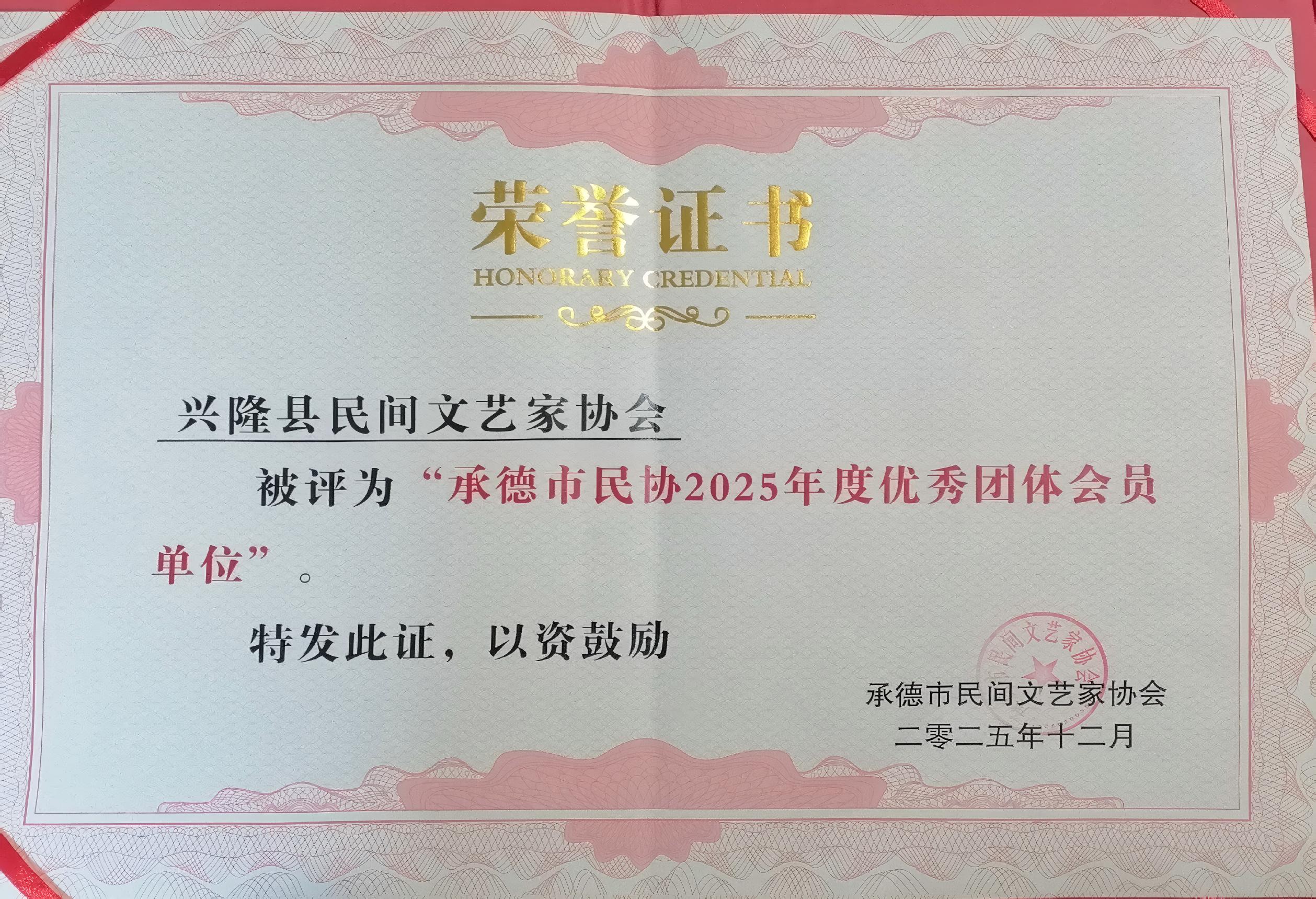 興隆縣民間文藝家協會 獲評承德市民協2025年度優秀團體會員單位
